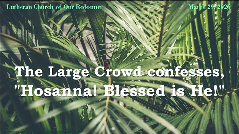 "THE LARGE CROWD CONFESSES, "HOSANNA BLESSED IS HE" "