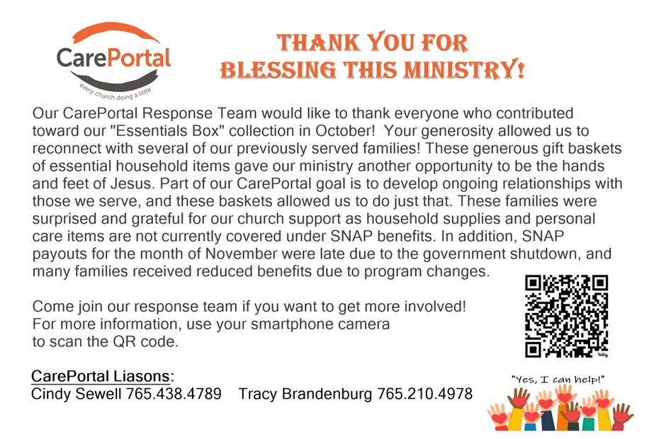 CarePortal is an online platform that brings the real-time needs of hurting children and families in the Kokomo area to our attention.