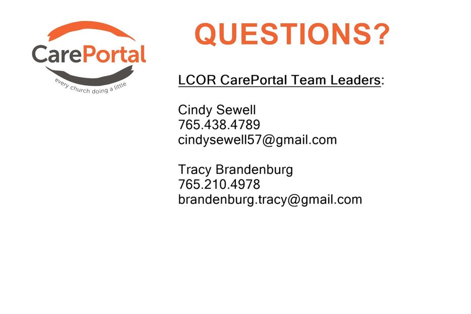 - Write a check to LCOR and note in the memo: CarePortal Ministry. (The church business manager will notify the CP leaders of donated funds to the CarePortal account.)